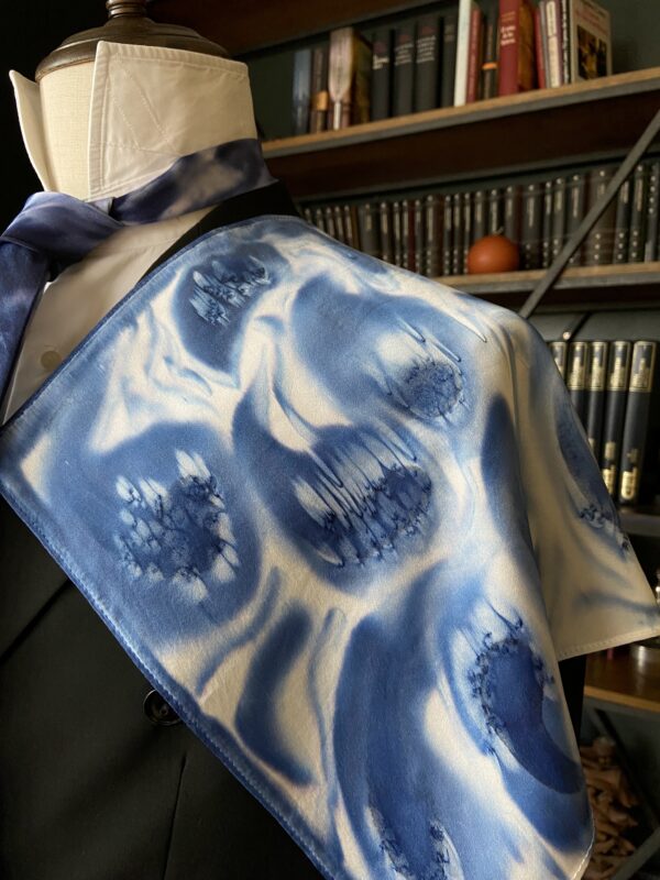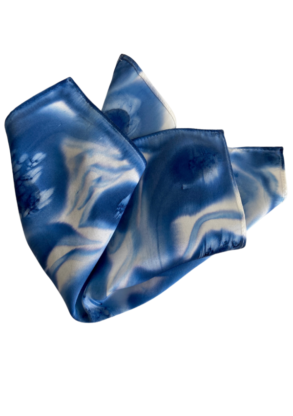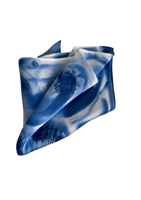 - Indulge in the unparalleled exclusivity of our “The Waves” pocket square, meticulously hand-painted on luxurious 100% silk material by our skilled artist in Spain. This one-of-a-kind masterpiece ensures that you are the sole owner of a truly unique and distinctive accessory.